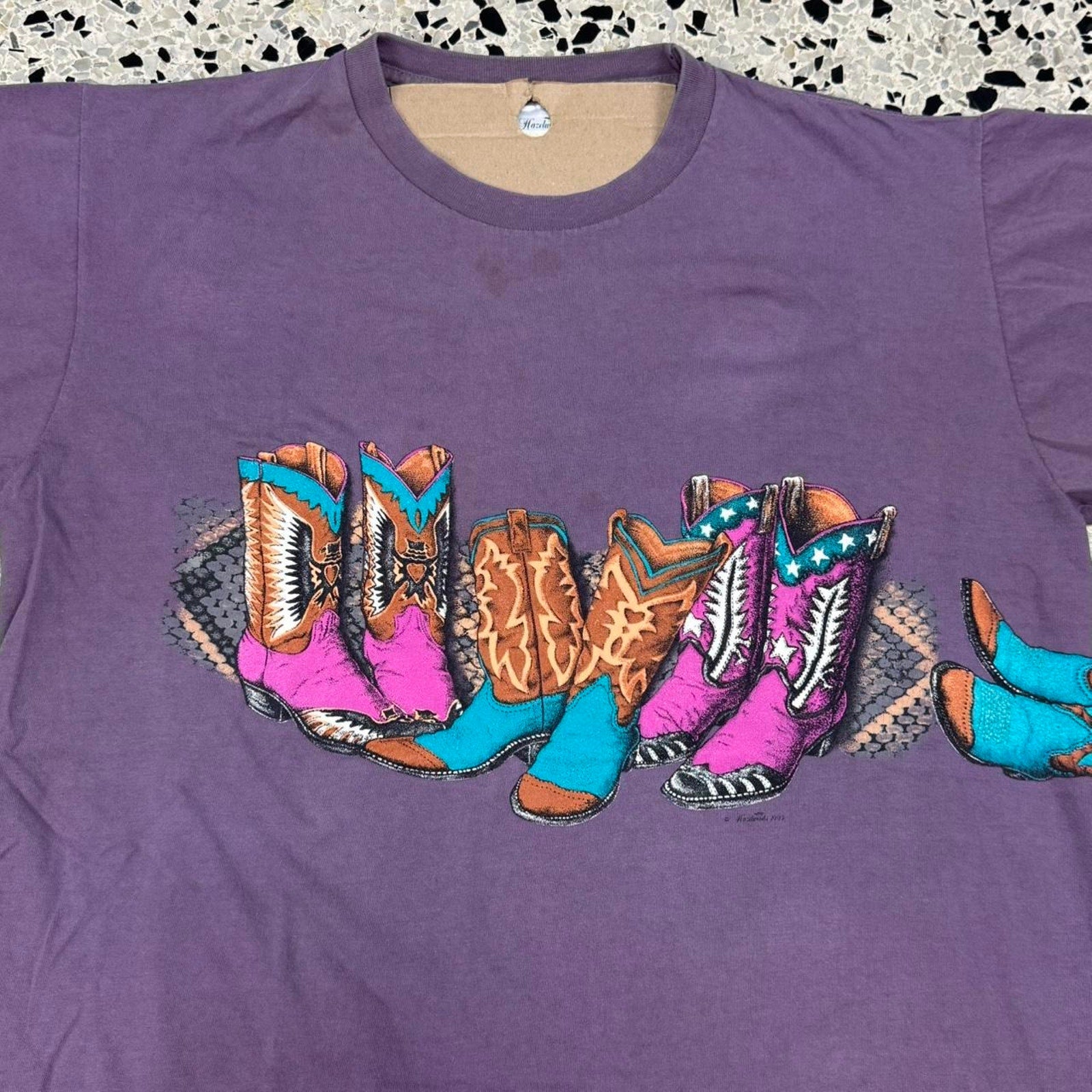 VINTAGE 90S SINGLE STITCH COWBOY BOOT WRAP AROUND TEE: