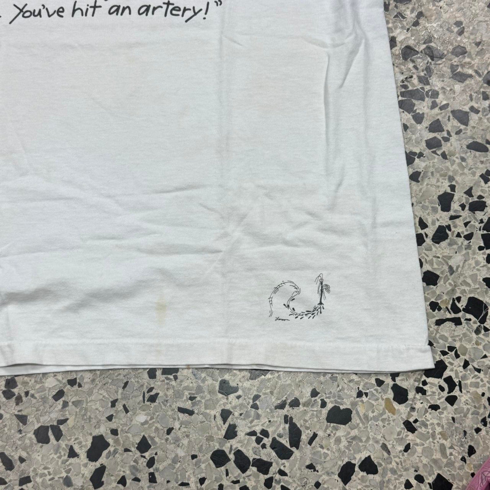 VINTAGE 90S SINGLE STITCH MOSQUITO HIT AN ARTERY COMIC STRIP TEE: