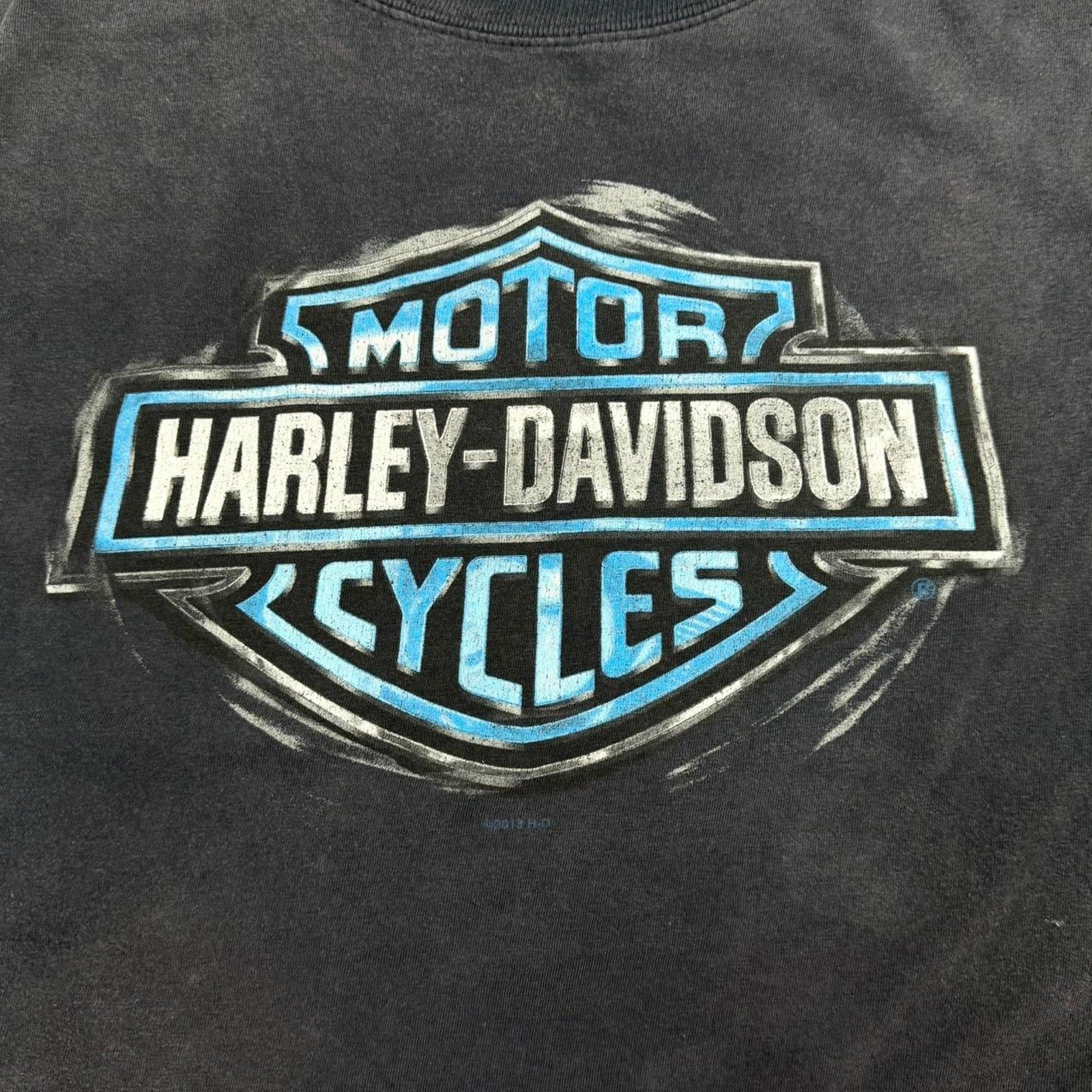 VINTAGE Y2K HARLEY DAVIDSON BLUE EMBLEM X BOSTON HARLEY DAVIDSON TEE: