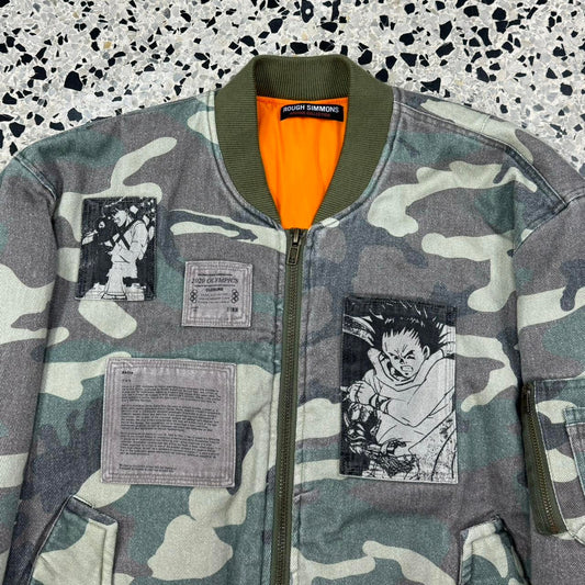 ROUGH SIMMONS NEOTOKYO AKIRA BOMBER CAMO PATCHWORK JACKET: